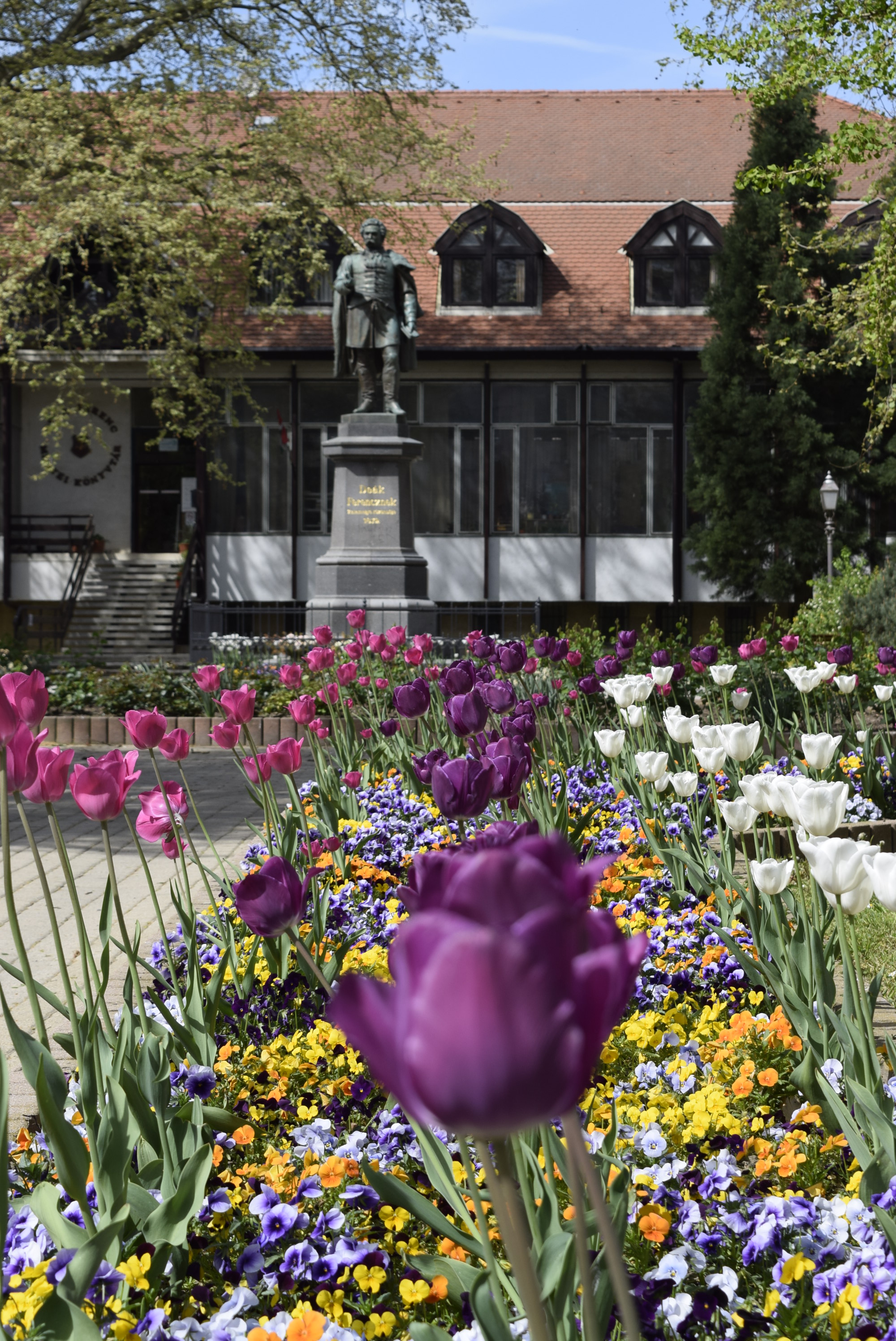 • A Haza Bölcse a róla elnevezett Deák Ferenc Megyei és Városi Könyvtár, 1967-ben emelt épülete előtt áll.