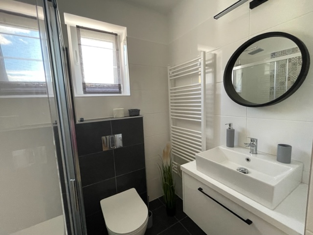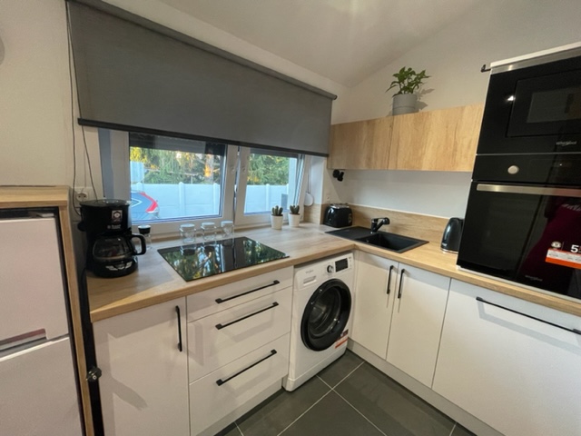 3 hálószobával, 6 boxspring ággyal, minibárral, széffel, 3 db (zuhanyzós, WC-s) fürdőszobával, teljesen új, modern felszereléssel ellátott konyha-étkezővel (mosogatógép, mosógép, hűtő-fagyasztó, elektromos főzőlap-sütő stb.) rendelkezik.