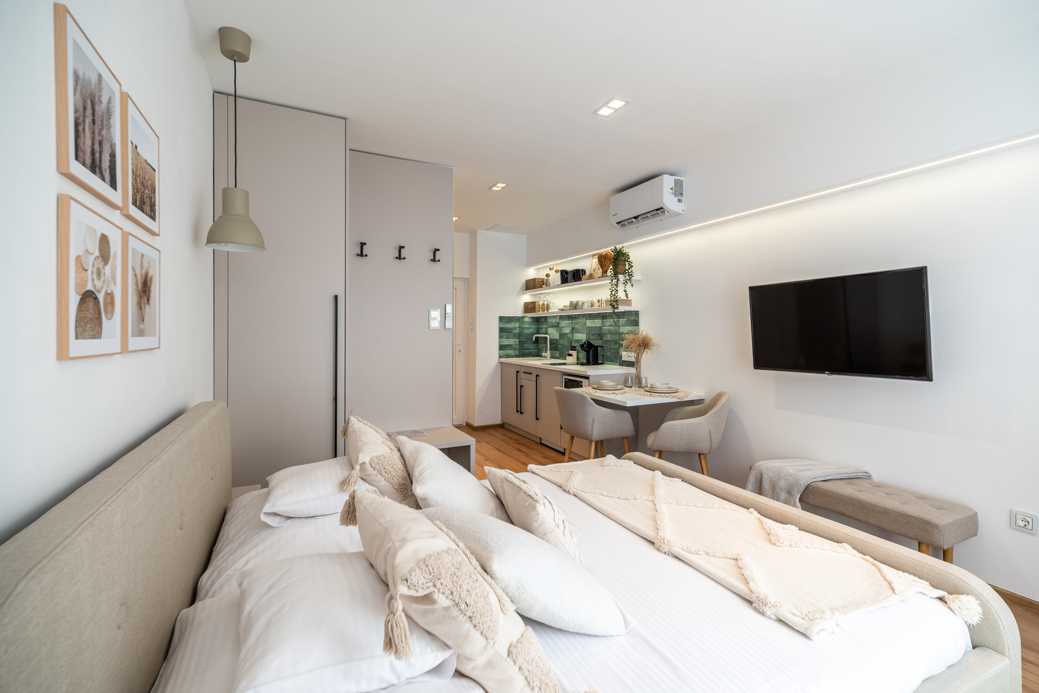 Üdvözlünk a Geri Harmony Home-ban, ahol a belvárosi kényelem és a nyugodt atmoszféra találkozik! Ez a világos, barátságos és modern apartman Zalaegerszeg szívében található, így minden fontos látnivaló, étterem, kávézó és üzlet könnyedén elérhető.Bár a város pezsgése csupán egy lépésre van, az apartman csendes, nyugodt környezetet biztosít, ahol maximálisan kikapcsolódhatsz. A gondosan kialakított, jól felszerelt tér ideális választás mind az üzleti utazók, mind a várost felfedezni vágyók számára. A természetes színek és a letisztult berendezés kellemes, harmonikus légkört teremtenek, hogy otthonosan érezd magad már az első perctől kezdve. Látogass el hozzánk, és tapasztald meg a belvárosi nyugalmat!